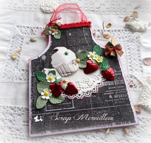 Cette carte à la forme d’un tablier, il est agrémenté de petites fraises et cup cake. La carte double s’ouvre pour vous permettre d’insérer à l’intérieur votre texte. Il n’y a pas noté de sentiment, vous pouvez l’utiliser pour différentes occasions.