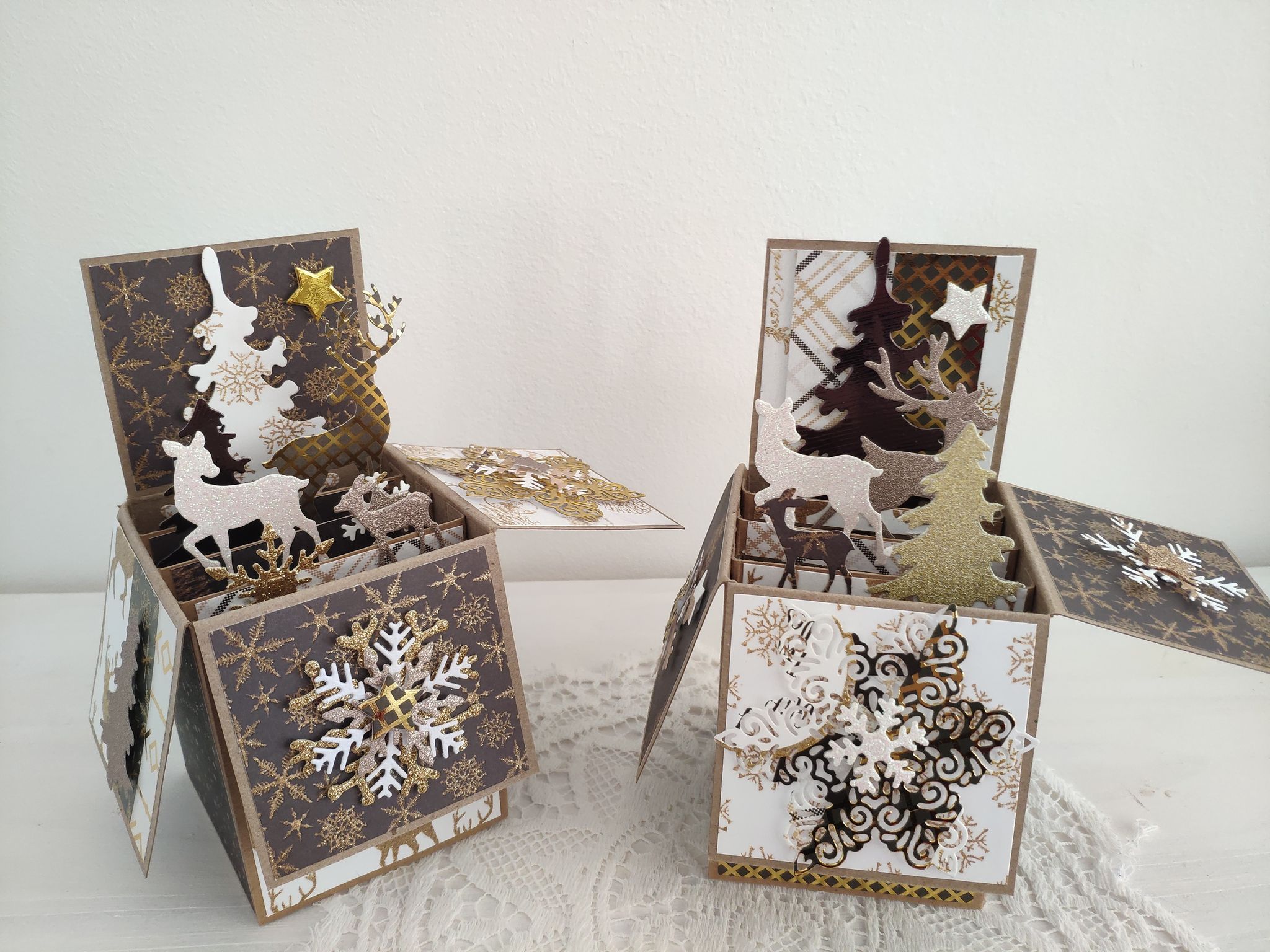Carte pop up Noël marron/or