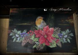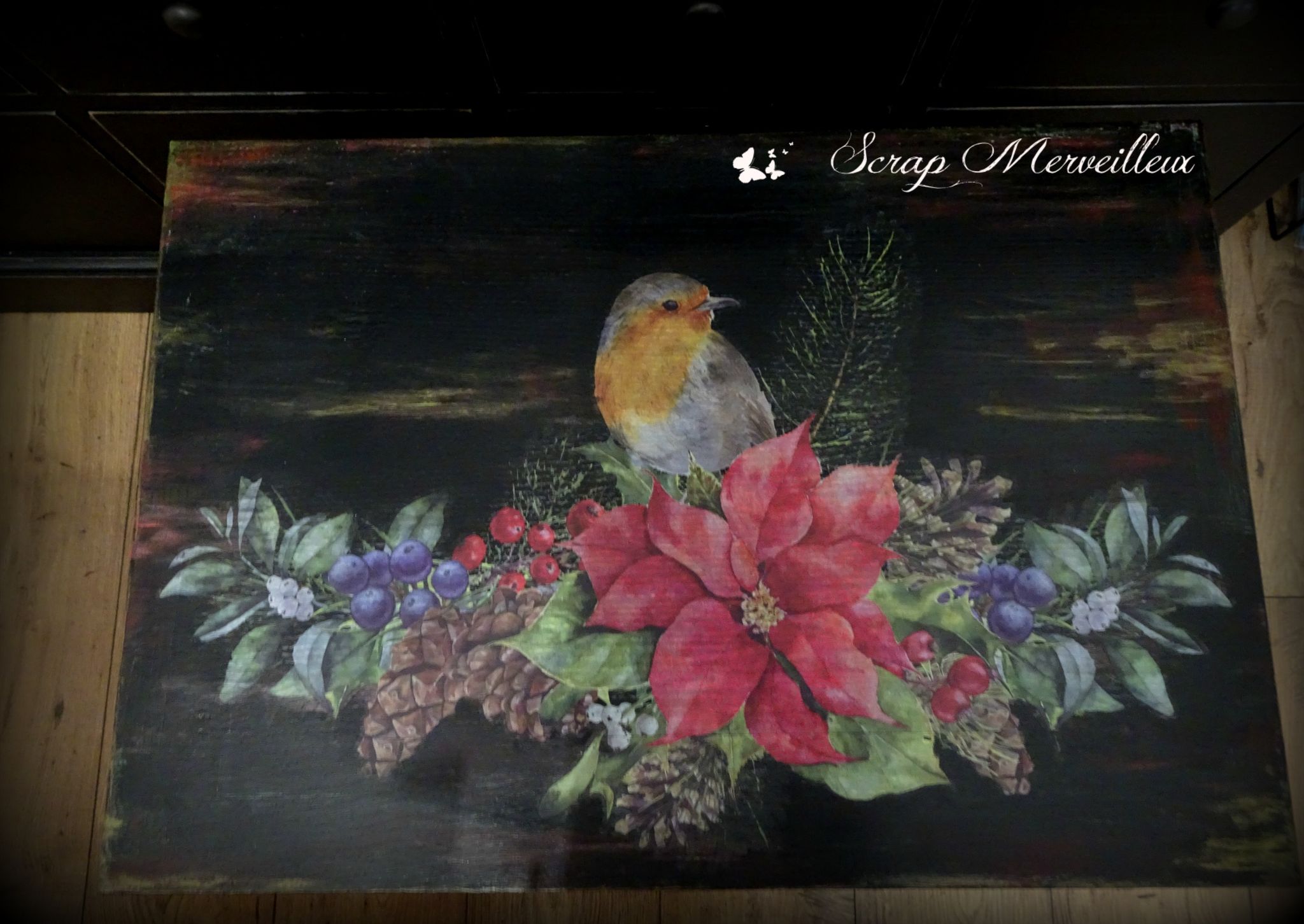 Relooking d’un petit meuble décoré aux motifs d’hiver sur un fond patiné noir. Chevet en bois massif, patiné et décoré dans l’esprit de noël, la couleur de fond est noire avec des effets patiné rouge et or. Il comporte un tiroir, il peut convenir comme chevet, en bout de canapé ou pour une petite table basse d’appoint… il mesure 55cm de large par 38cm de profondeur et environ 54 cm de hauteur.