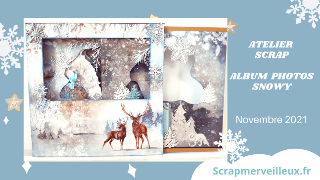 Pour l’atelier de novembre je vous ai préparé un très grand album photos avec des pages en 30x30cm. C’est un album un peu théâtral… Les papiers utilisés sont ceux de la marque Craft o clock « Snowy winterland ». Les ateliers* pour le faire sont prévus le samedi 20 novembre de 9h00 à 17h00 ou le lundi 22 novembre à Montauban (82), date à choisir suivant vos disponibilités. (dans le cas ou il n’y aurait pas assez d’inscriptions l’atelier du samedi pourrait être annulé) en revanche il reste peu de places pour le lundi.